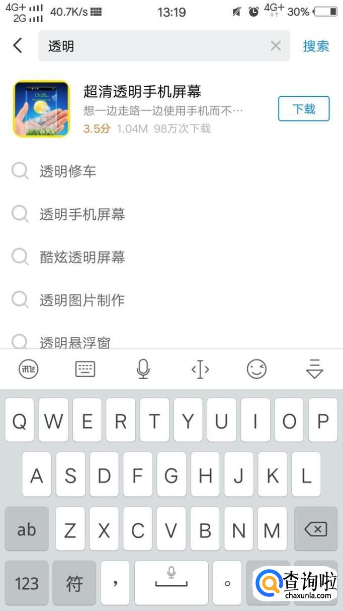 首先,在手机的应用商店里面搜索下载透明手机屏幕的软件。