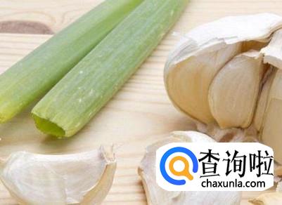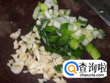 准备圆茄子、葱和蒜。