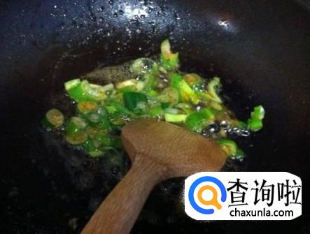 锅中再放入少许食用油,油热后,将葱放入锅中炝香。