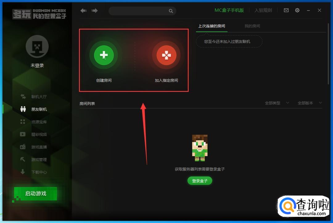 在进入联机大厅后,点击创建联机世界,选择自己要的房间特征和地图,然后选择创建房间。