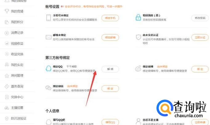 进入之后在后面找到绑定的区域,如下图,直接找到绑定qq就可以了。
