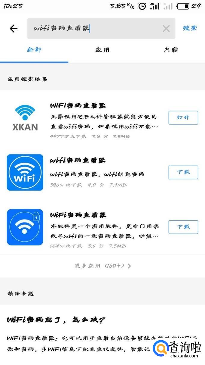 然后我们可以找到WIFI密码查看器,然后下载安装