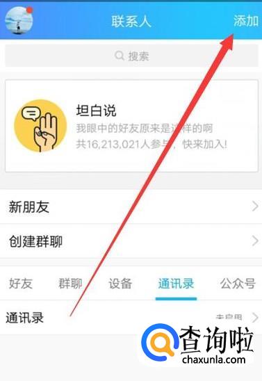 进入之后,找到图示位置的“添加”,点击并进入,如图所示。