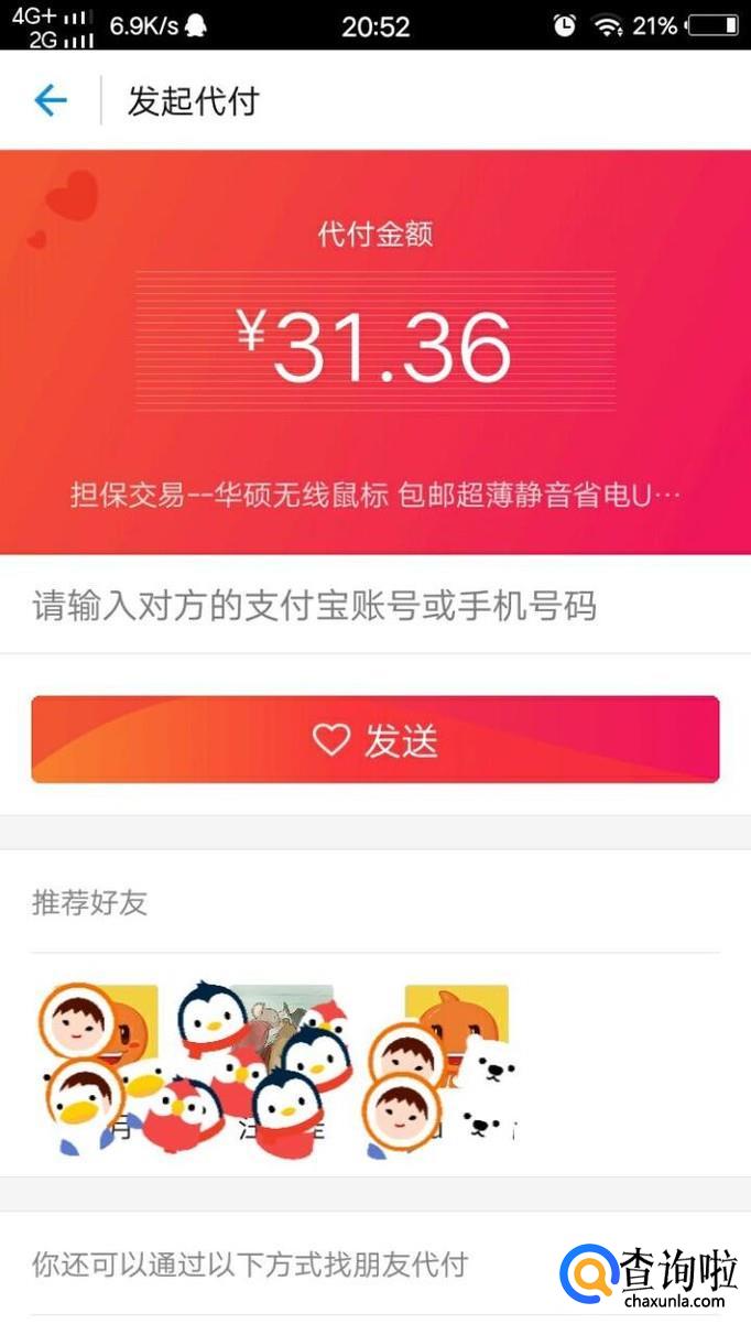 最后,在付款的时候选择“朋友代付”,并且输入代付好友的手机号即可。