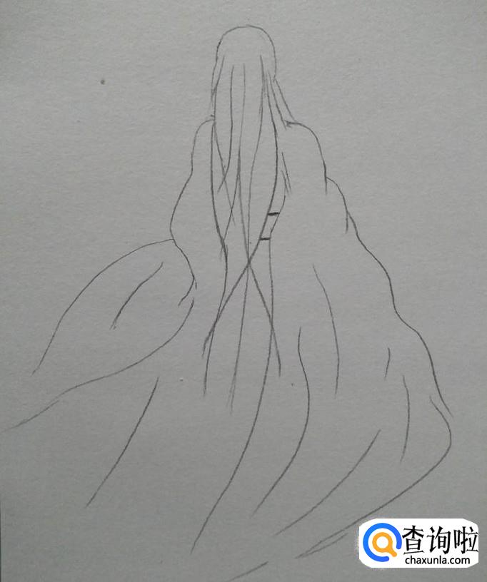 然后增加衣服的弧线,使衣服看起来更加自然,接下来,勾勒出飘逸的长发