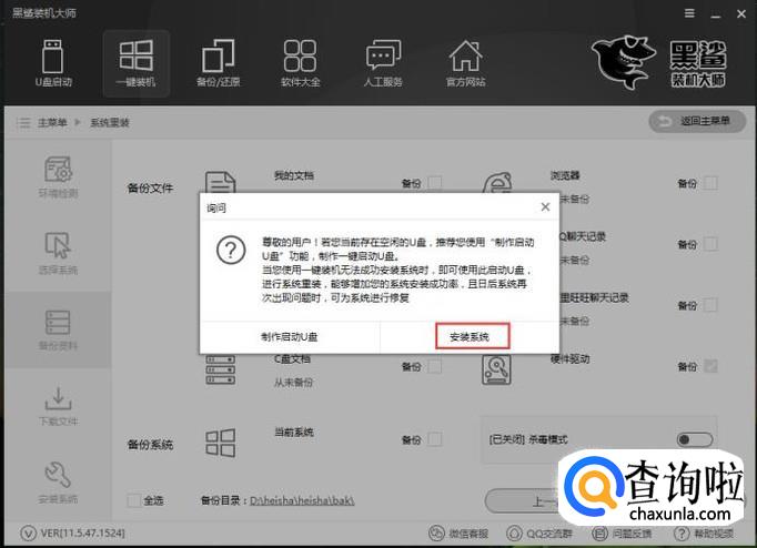 点击了下一步后会看到询问的界面此时在点击安装系统功能就可以在线重装系统了