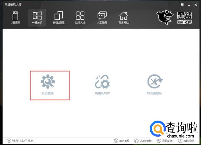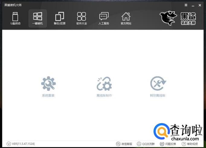 打开黑鲨装机大师后会看到系统重装-离线版制作-转到离线版的功能
