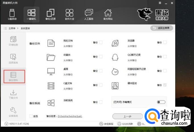 点击下一步后会来备份资料界面如果没有重要的信息文件就直接点击下一步