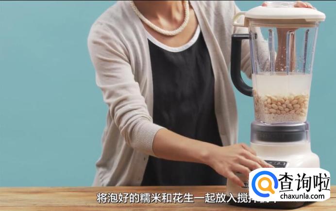 将泡好的糯米和花生一起放入搅拌机中,打成糊状。