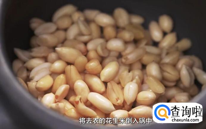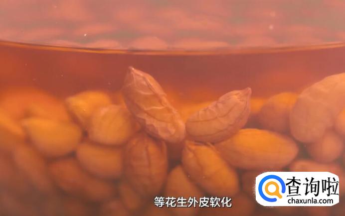 待花生外皮软化后,就可以很轻松地剥去了。