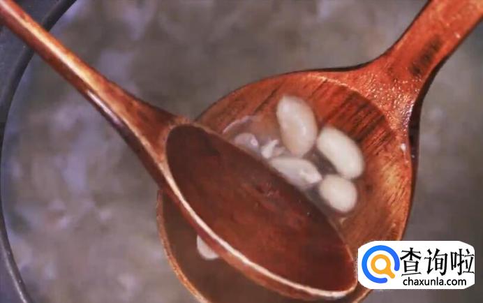 接下来做花生汤。将去衣的花生米倒入锅中,倒入约1000毫升清水。
