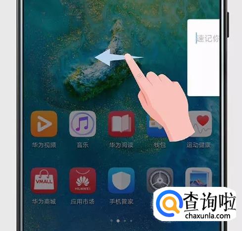 手机主界面,在屏幕解锁状态下,从屏幕边缘的速记区域向内滑动。