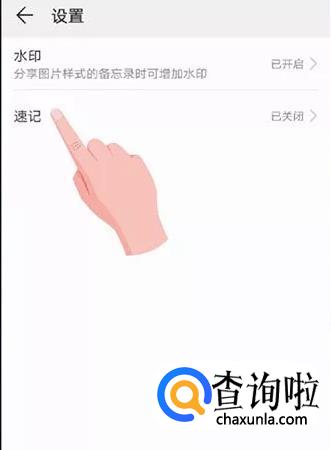 打开备忘录。选择左上角图标“☰”> 设置 > 速记,打开速记开关。