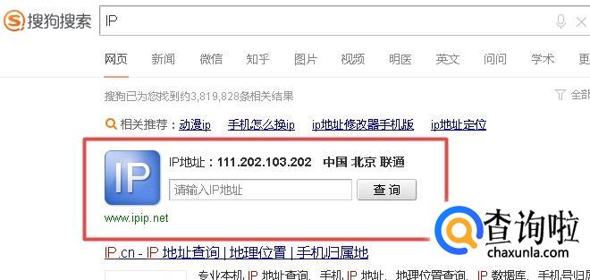 在搜狗高速浏览器中,输入“IP”进行查询,搜索出来输入“IP地址”就可以查询了。
