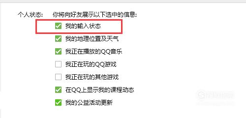 将【我的输入状态】前面的小勾点击取消,别人就看不见你的输入状态。
