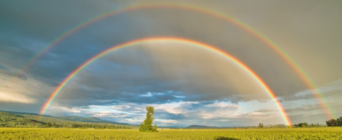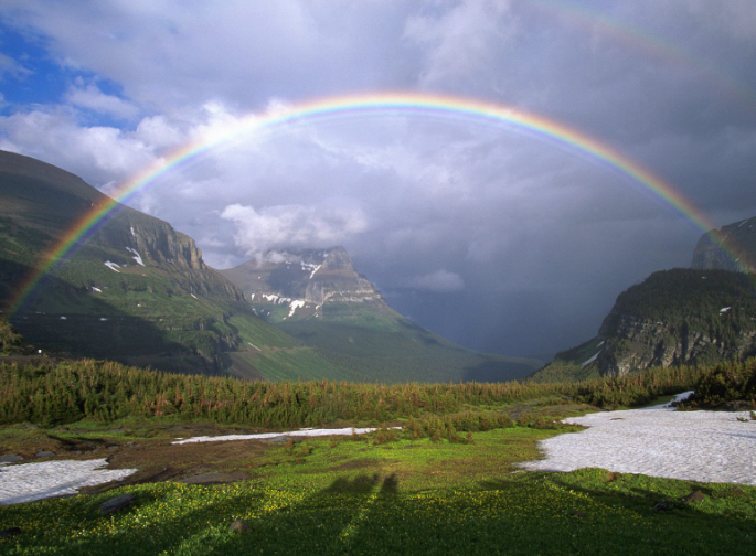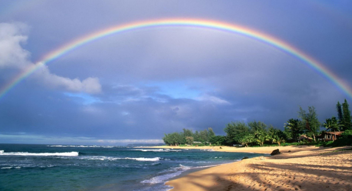 彩虹,又称天弓(客家话)、天虹、绛等,简称虹,是气象中的一种光学现象。彩虹出现的原因是雷雨或者阵雨过后,空气中浮悬着许多小水珠。这些小水珠在太阳光的照射下,产生了折射和内反射。而太阳的可见光——红、橙、黄、绿、蓝、靛、紫七色的波长都不一样,当它们照射到空中这些小水珠上时,被分解成七色光而形成彩虹。