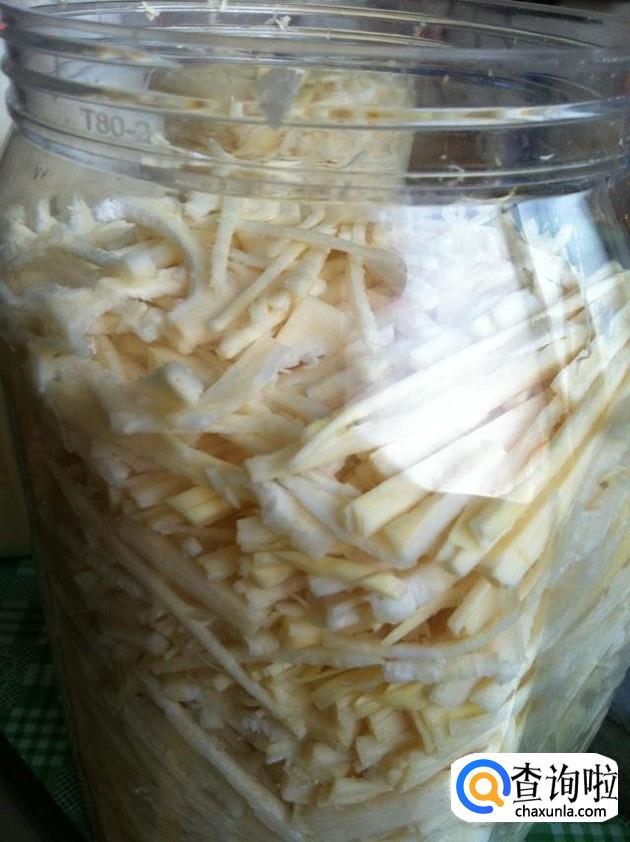最后将切好的笋码入坛子,倒入晾凉的白开水密封,放在阴凉干燥通风的地方,需要注意的是水位要超过笋的量。