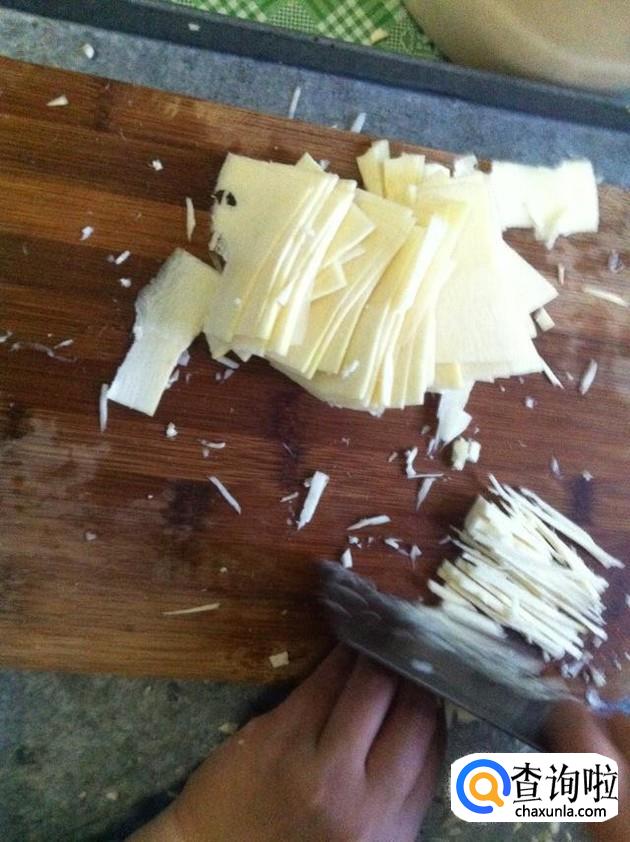 首先我们需要把笋去壳,留适量笋衣,一直剥到笋摸起来比较软就可以了,然后把剥好的笋洗净,切条晾干