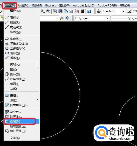 面域的创建就是点击“绘图”,下拉菜单中选择“面域”(也可以选择在下方命令栏输入命令“REG”,“REG”即创建面域的快捷键)。