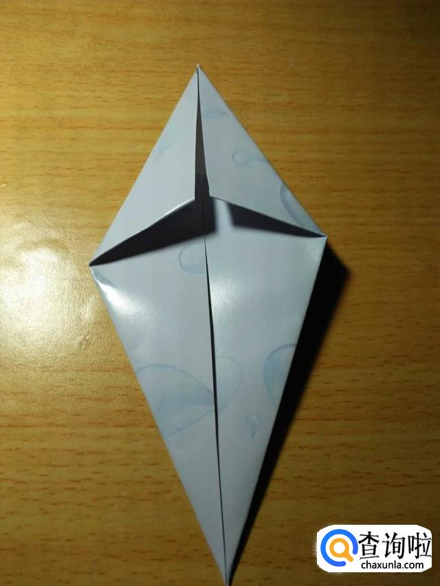 再把长的对角线的方向的两边往中间对折。
