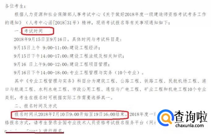 在通知内,就会有一建考试的考试时间、报名时间等相关信息和考试安排。还有有报名的入口链接,复制报名平台的网址(如图所示标记处网址),打开网页即可参与报名。