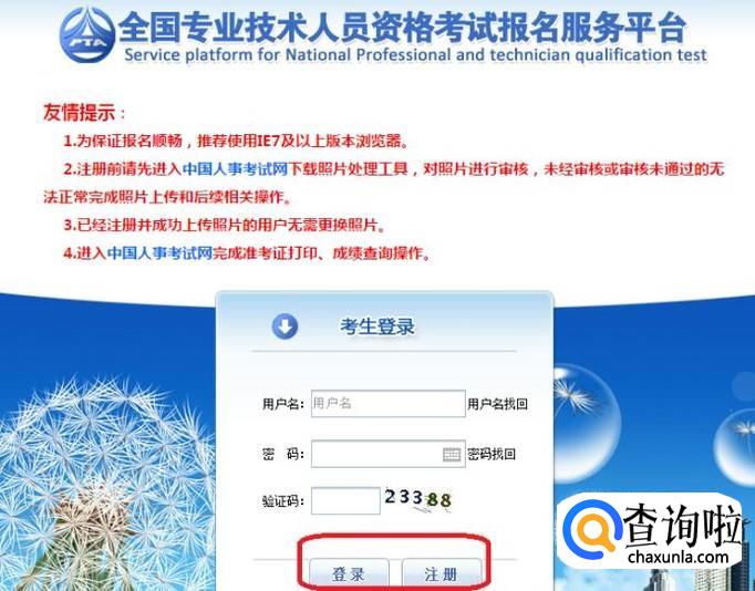 以前参加过考试的人员只需登录即可,第一次报名考试需要注册一下。