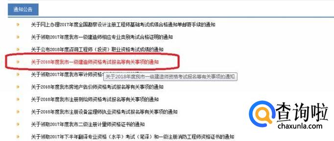 进入人事考试网首页后,我们需要关注首页内“通知公告”栏内关于一建考试的通知,入口位置如图所示,一般考试报名前,都会在网站上有通知,找到通知后,我们点击进入。
