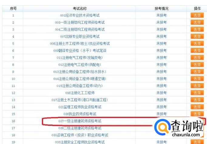 进入报名页面后,只需找到一建考试,点击“选择”,然后按照提示报名缴费就可以参加考试了。