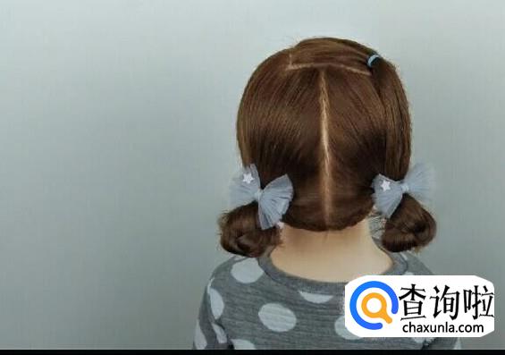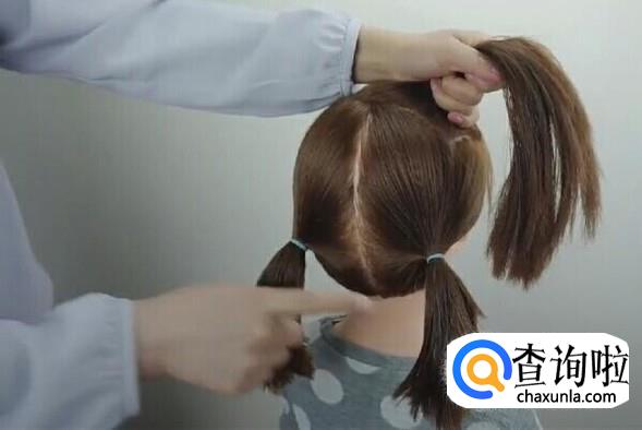 然后再将后面的头发分成两部分,大小也差不多要相等,然后左右两边各扎一个小辫子。