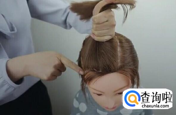 首先在小女孩头上前面扎一个小辫子,注意两边要留有足够的头发,如下图所示。