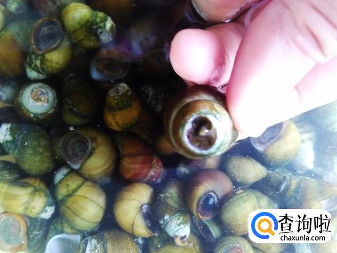 然后把泡好的田螺尾尖剪掉。【剪掉尾尖吃的时候才可以吸出肉来】