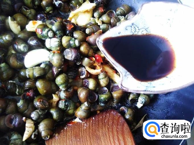 田螺1斤,姜丝、蒜米、小米辣剁椒适量,2勺生抽。