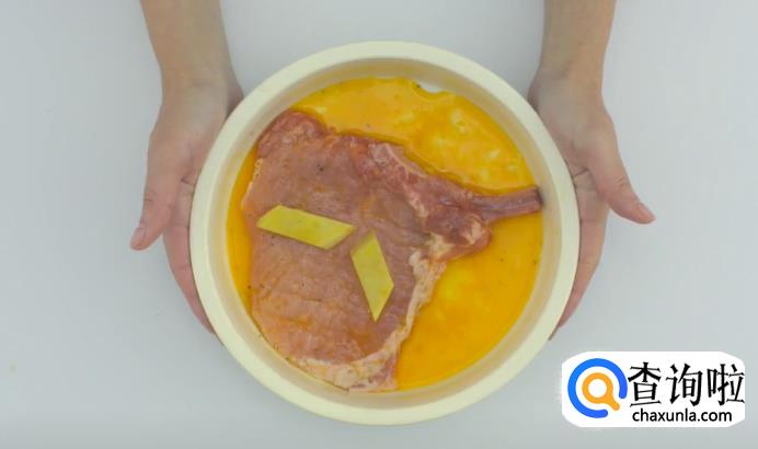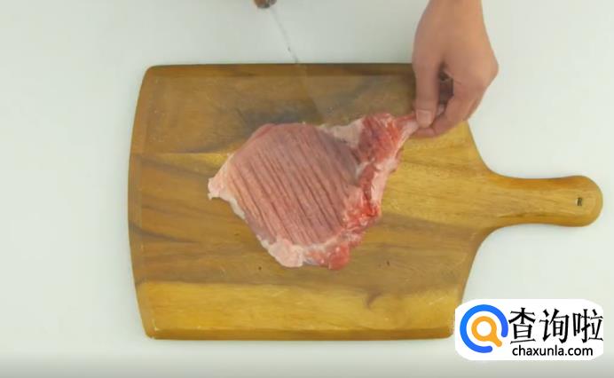 猪排需要选用带骨猪排肉,用刀背拍打猪排,使其肉质更加疏松。
