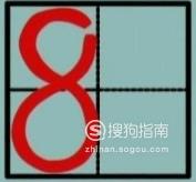“8”从右上碰线到左线成半圆,拐向右下面成圆碰右线,下线、左线,在向上,在中线以上和原线相交,最后,线到右上角附近稍离起笔处为止,不封口。