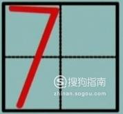 “7”先画一条横线,然后从右上角附近起,斜线到左下角附近。