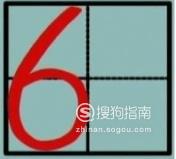 “6”从上线偏右一点起向下方画一个孤形,碰左线、底线,向上碰右线画成一个小圆,小圆上面超过中线。