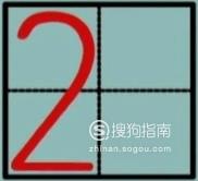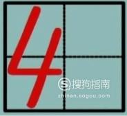 “4”从上线的中间起笔,向左斜线到下格,碰左线再折右碰线。第二笔从右上角附近下去,到下面的当中碰线。