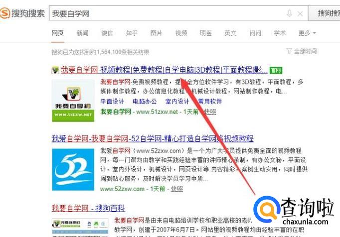 进入之后,搜索“我要自学网”,点击链接并进入,如图所示。