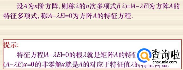 首先我们需要了解特征值和特征向量的定义,如下图;
