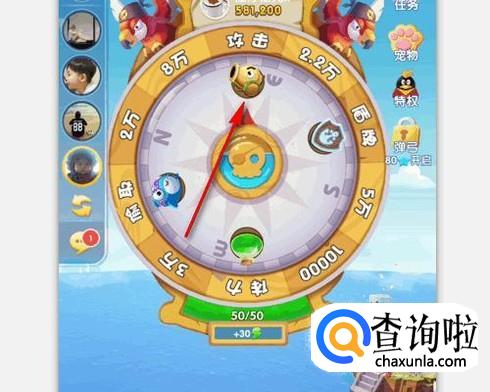 进入到全民岛主游戏主界面,开始摇动转盘,需要摇到【攻击】图标;