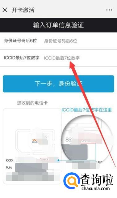 进入之后,输入身份证相关信息和ICCID相关信息,点击“身份验证”即可,如图所示。