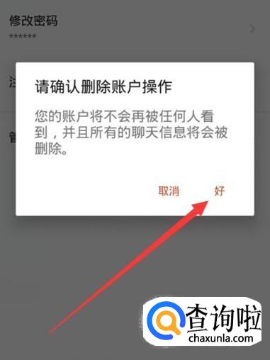 选择好原因之后,点击“好”即可注销和删除账号,如图所示。