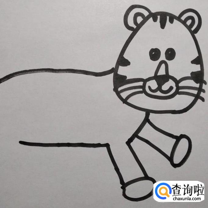 画出老虎身体上的花纹,老虎背上的花纹稍粗一些,显得老虎更霸气。老虎的简笔画就完成了!