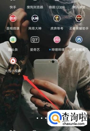 打开手机,找到火山小视频,点击并进入,如图所示。