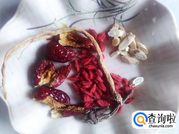 当归、枸杞、党参、黄芪、红枣准备好。