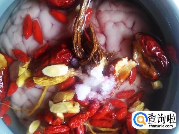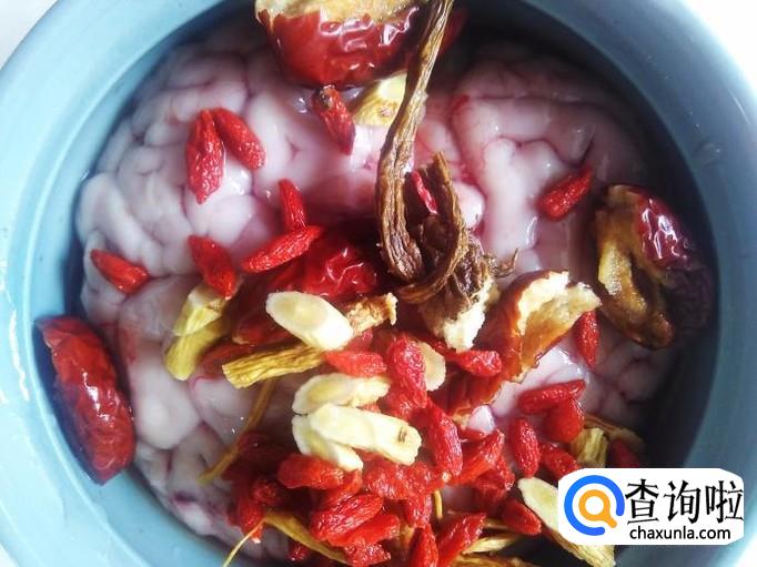 牛脑1副,当归、枸杞、党参、黄芪、红枣、姜片、料酒适量。