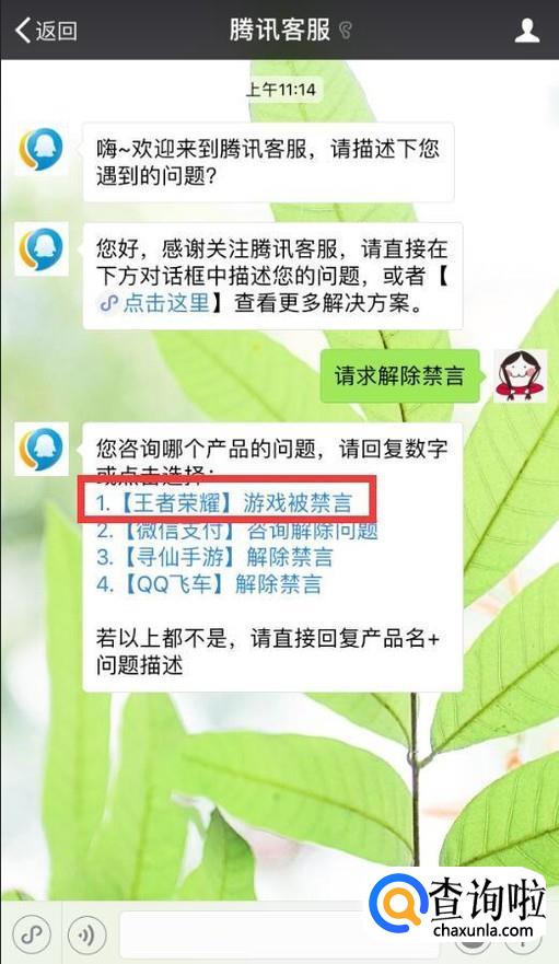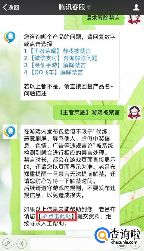 按照回复提示,点击“1.【王者荣耀】游戏被禁言”。
