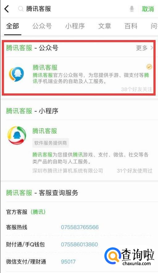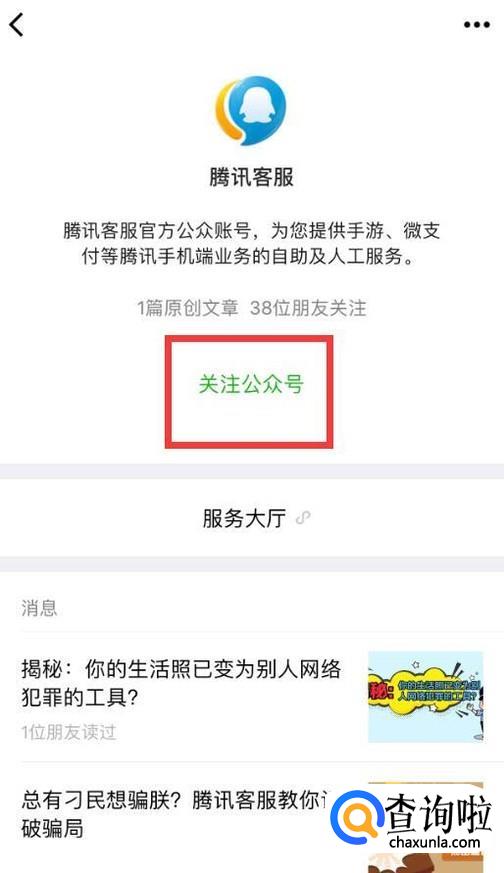 打开微信,搜索“腾讯客服”公众号并关注。