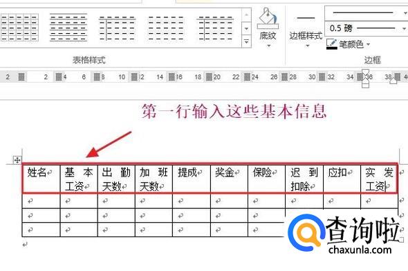 接下来,我们在第一行将工资表的基本组成输入进去,比如姓名、基本工资等信息,要和Excel里面的格式一样,我们也可以将全部表格将其设置为居中对齐,这样看起来更加美观;