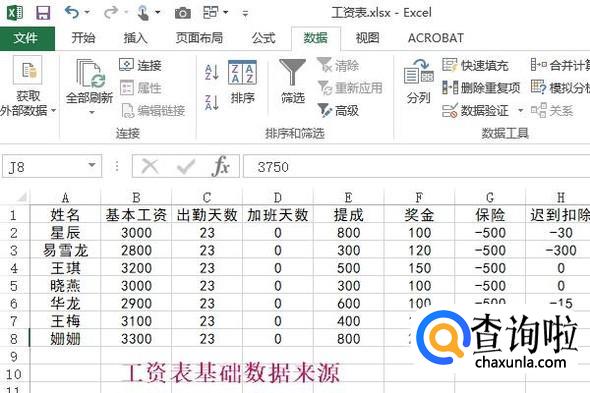 以上小编已经说过,工资表和工资条是不一样的,不过多数人编辑工资表是通过Excel表格,也就是说我们在通过Word制作工资条之前,是需要用到工资表这个基础数据的,下图就是小编制作的一份工资表,如图所示...